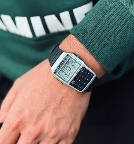 The Casio calculator watch is not just a tool; it is a statement piece that reflects a modern lifestyle. Its combination of advanced technology and classic design makes it a versatile accessory that appeals to a wide range of users. With its water-resistant capabilities, the watch can withstand splashes and brief immersion, adding to its practicality. This timepiece is an excellent choice for those who seek a reliable and stylish watch that meets their everyday needs while also serving as a conversation starter. Embrace the convenience and elegance of the Casio calculator watch in black, and elevate your accessory collection today. This is a 1stcopy watch.