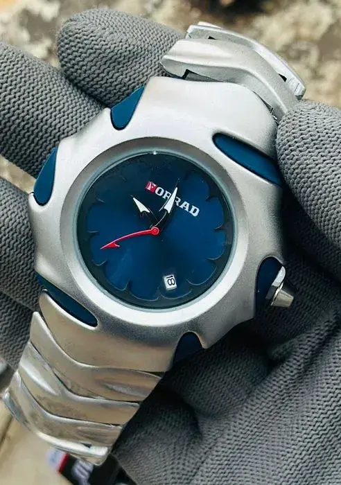 Forrad Watch Benlydesign Watch Unique Metal Wristwatch, Y2K Watches , Futuristic Watch, Stainless Steel Strap Luxury Vantage Y2K Alabaster Watch with Blue Dial