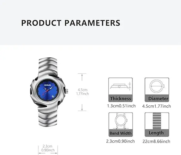 - ⌚Quality Material: This Futuristic Watch strap is made of stainless steel, comfortable and soft and breathable. Mineral glasses, Suit for all kinds of occasions.