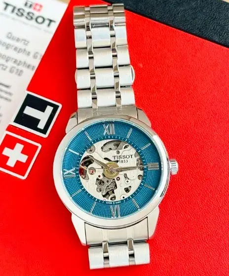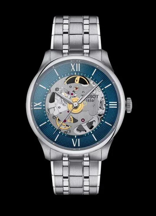 Tissot Watch Price – Tissot Chemin des Tourelles Skeleton Stainless Steel Blue Dial Open Heart Automatic Men’s Watch